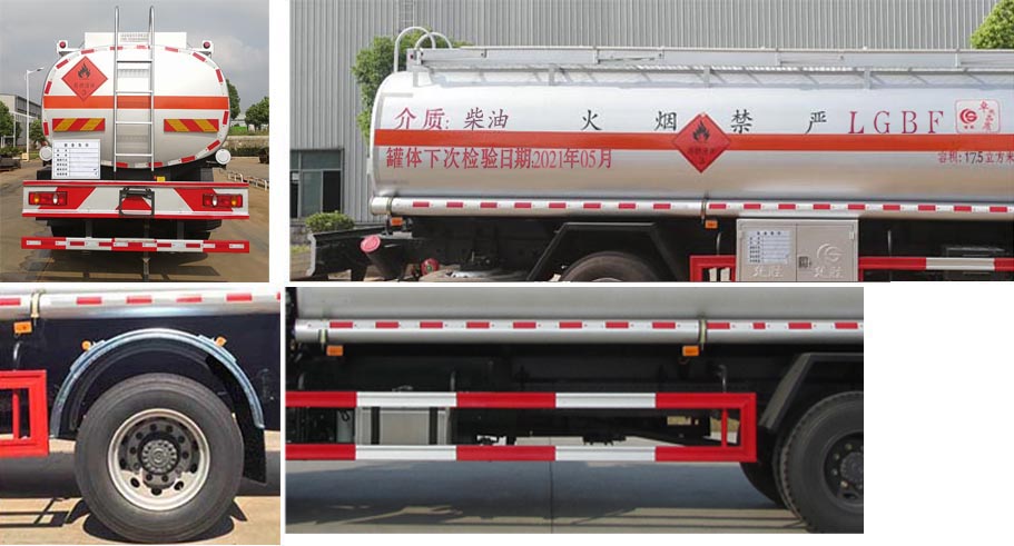| 配置 | 1、該車適用于危險品運輸,運送危險貨物車輛類型為:FL型,類項號:3。罐體有效容積:14.9立方米,運輸介質(zhì):汽油,密度:700千克/立方米,罐體外形尺寸(長×寬×高)(mm):5700×2200×1450。罐體上部選裝上走道;選裝后部尾燈架樣式;選裝弧形擋泥板。選裝左側(cè)無工具箱。2、側(cè),后防護材料均為Q235,螺栓連接;后防護截面尺寸120×60mm,下邊緣離地高500mm。3、僅采用軸距(mm):4700。后軸采用空氣懸架。隨底盤選裝駕駛室前面罩,選裝側(cè)窗玻璃;駕駛室頂部中間三個裝飾燈為選裝件;前霧燈為選裝件;駕駛室前臉擾流罩為選裝件。僅選用排氣管前置、限速裝置(限速80km/h)、前輪盤式制動及子午線輪胎的底盤;安裝帶有衛(wèi)星定位功能的行駛記錄儀;ABS型號/生產(chǎn)廠家:3631010-C2000/東科克諾爾商用車制動系統(tǒng)(十堰)有限公司。發(fā)動機B6.2NS6B210油耗值為26.5 L/100Km。 該車后軸為采用空氣懸架. | ||