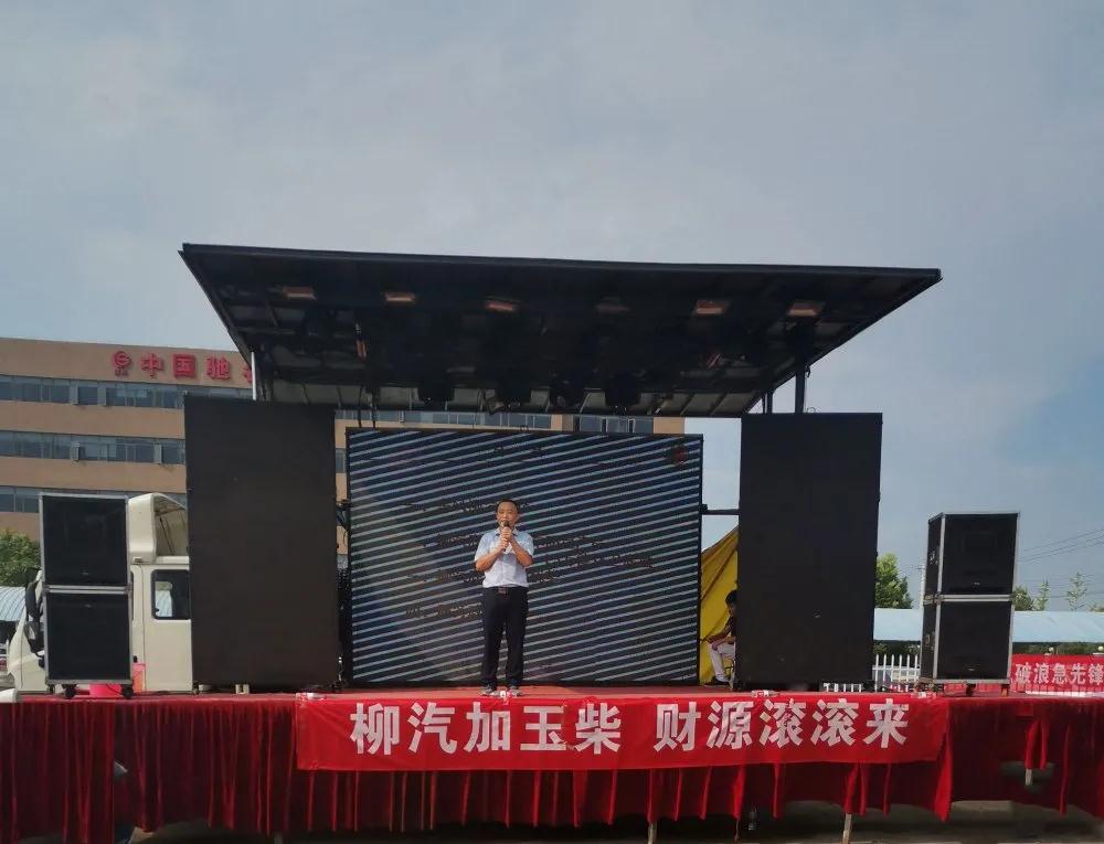 烈日下美女們火辣辣的開場舞之后湖北加貝的代表賀總和楚勝集團(tuán)的代表董總分別上臺(tái)講話,對此次活動(dòng)的舉辦以及乘龍L3“龍騰天下”灑水車的上市表示大力的支持和美好的愿景!