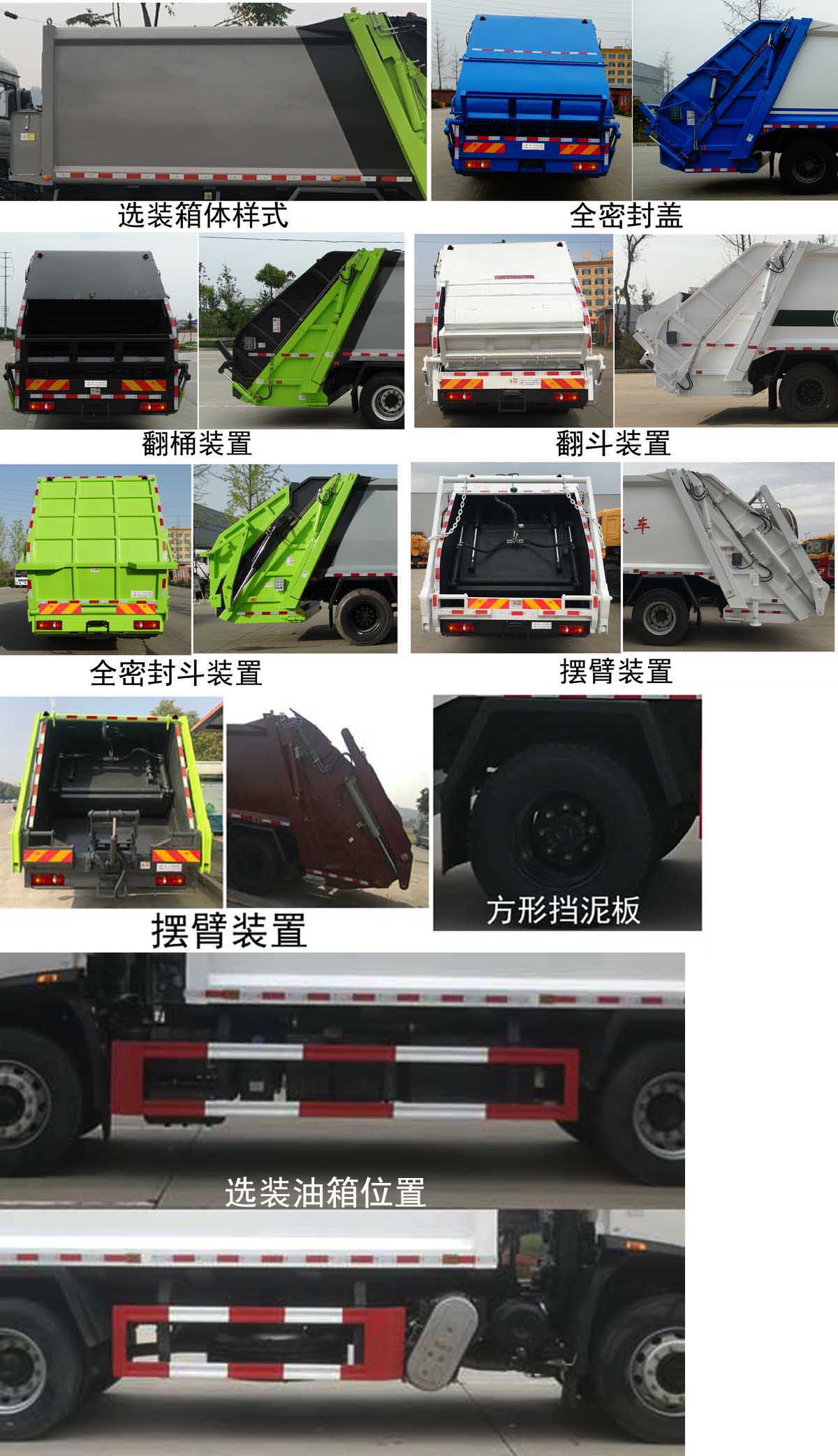 | 配置 | 1、該車(chē)主要專用裝置由箱體、壓縮系統(tǒng)組成,用于垃圾的收集與清運(yùn)。該車(chē)可選裝方形或弧形箱體,選裝全密封蓋裝置,選裝方形擋泥板,選裝后部工作裝置,選裝側(cè)防護(hù)樣式。選裝工作裝置時(shí)外形長(zhǎng)/前懸/軸距/后伸對(duì)應(yīng)關(guān)系為(mm):①無(wú)上料裝置:8670/1400/4500/-;8700/1430/4500/-;8870/1400/4700/-;8900/1430/4700/-;②全密封斗裝置和擺臂裝置:8870/1400/4500/200;8900/1430/4500/200;9070/1400/4700/200;9100/1430/4700/200;③翻桶裝置和翻斗裝置:9070/1400/4500/400;9100/1430/4500/400;9270/1400/4700/400;9300/1430/4700/400。僅采用4500mm,4700mm軸距。2、側(cè)防護(hù)采用冷彎型鋼/Q235,螺栓連接;后防護(hù)由專用裝置替代,下邊緣離地高:500mm。3、隨底盤(pán)選裝高度不同的駕駛室;選裝前霧燈;選裝駕駛室頂部裝飾燈;選裝駕駛室前面罩;選裝前保險(xiǎn)杠及前部燈具,駕駛室前臉擾流罩為選裝件;駕駛室臥鋪側(cè)窗選裝裝飾板;選裝油箱安裝位置,選裝踏步結(jié)構(gòu)。安裝帶有衛(wèi)星定位功能的行駛記錄儀。ABS型號(hào)/生產(chǎn)廠家:3631010-C2000/東科克諾爾商用車(chē)制動(dòng)系統(tǒng)(十堰)有限公司,ABS 8/東科克諾爾商用車(chē)制動(dòng)系統(tǒng)(十堰)有限公司, 4460046450/威伯科汽車(chē)**系統(tǒng)(**)有限公司。采用的發(fā)動(dòng)機(jī)與油耗值對(duì)應(yīng)關(guān)系為(L/100Km):DDi50E190-60/23.9,D4.5NS6B190/24.4,D6.7NS6B230/23.7,B6.2NS6B210/23.8,B6.2NS6B230/23.8。 | ||