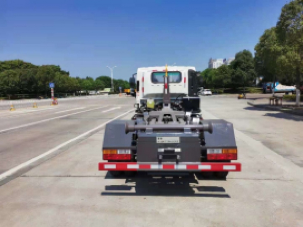 產(chǎn)品配置:主體結(jié)構(gòu)高強Q460方筒制作,手電兩用閥(中梅),雙油缸舉升設(shè)計(鼎盛),億力取力器,(十堰岳東)泵,遠飏油管,帶液壓后支腿,一體化的聯(lián)動鎖緊加上安全限位裝制,高強度精密鑄造件,副梁左右?guī)屑芗皩?dǎo)輪,防止箱體滑動,一車可配多個垃圾箱。