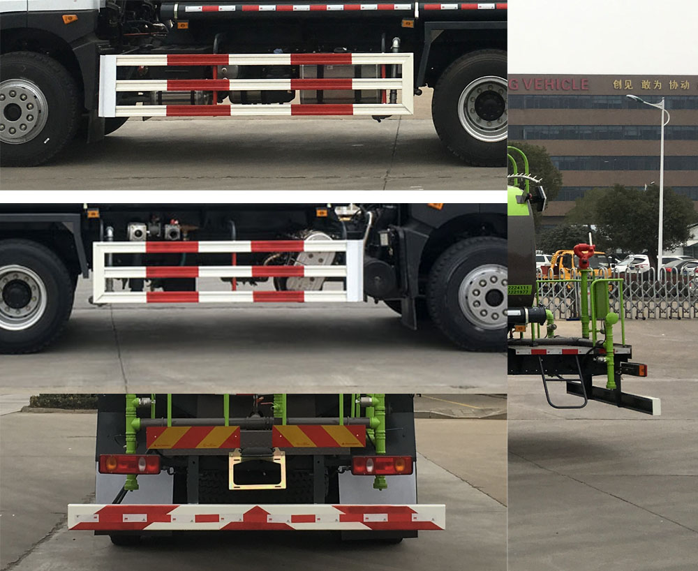 | 配置 | 該車用于路面灑水及園林綠化,主要專用裝置為噴灑總成。罐體有效容積:15.22立方米。罐體外形尺寸(長×寬×高)(mm):6500×2240×1520。側、后防護均采用Q235,螺栓連接;后防護截面尺寸:150×80mm,下邊緣離地高470mm。隨底盤選裝駕駛室,僅選用4350+1350(mm)軸距底盤。ABS**器型號/生產企業(yè):3631010-C2000/東科克諾爾商用車制動系統(十堰)有限公司,J ABS/焦作博瑞克**技術有限公司。 | ||