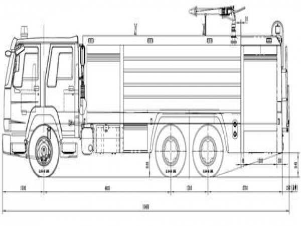 25噸泡沫消防車采用中國(guó)重汽集團(tuán)濟(jì)南卡車股份有限公司ZZ5447TXFV466MF1型二類汽車底盤,原裝單排駕駛室,乘員2人,該車駕乘舒適輕便。上裝采用外露式水罐,整車載液量為水21400kg;泡沫3000kg,罐體容積偏差正負(fù)不超過(guò)3%。器材箱采用高質(zhì)量鋁合金卷簾門。底盤取力,發(fā)動(dòng)機(jī)型號(hào)為MC11.44-60 ,最大功率327kW,通過(guò)萬(wàn)向聯(lián)軸器驅(qū)動(dòng)安裝在汽車尾部泵房里的上海茸申CB10/100型低壓消防泵,可在1.0MPa下穩(wěn)定輸出100L/s的流量;車頂安裝成都威斯特消防器材有限責(zé)任公司生產(chǎn)的PL8/80型消防炮(泡沫消防車),流量80L/s,對(duì)應(yīng)壓力0.8MPa,最大承壓1.3MPa,純水射程80m,泡沫射程75m,可360°旋轉(zhuǎn)。同時(shí)該車具有比功率大、綜合性能強(qiáng)、操控集中簡(jiǎn)便等特點(diǎn)。