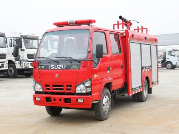 2噸消防車采用慶鈴汽車股份有限公司QL1070BUHWY 型二類汽車底盤,原裝雙排駕駛室,乘員2+3人,該車駕乘舒適輕便。上裝采用內(nèi)藏式水罐,整車載液量為1880kg。器材箱采用高質(zhì)量鋁合金卷簾門。底盤取力,發(fā)動機(jī)型號為4KH1CN6LB,最大功率88kW,通過萬向聯(lián)軸器驅(qū)動安裝在汽車尾部泵房里的CB10/30型常壓消防泵,可在1.0MPa下穩(wěn)定輸出30L/s的流量;車頂安裝PS8/30W型消防炮,流量30L/s,對應(yīng)壓力0.8MPa,最大承壓1.3MPa,射程60m,可360°旋轉(zhuǎn)。該車具有軸距短、通過性強(qiáng)、綜合性能強(qiáng)、操控集中簡便等特點。